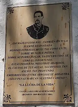 • Poem by Candelario Obeso (nineteenth-century black Colombian poet) about the Magdalena River, on placard in Mompox