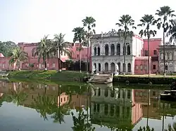 - 🌍 Sadarbari (Folk-Art and Crafts Museum). 9am-5pm, Fr-We. An old mansion built in 1901 to house a Hindu Zamindar. A mix of Indian, European and Mughal architecture. One entrance has steps leading down to the tranquil lake, while the other is embellished with a beautiful mosaic of blue and white tiles. There is an exhibition inside, with numerous displays concerning the area. There is also a gift shop. Tk 100.