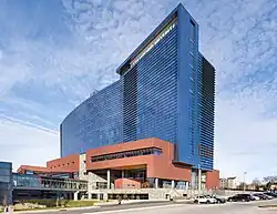 - Stamford Marriott Hotel & Spa, 243 Tresser Blvd, β +1-203-357-9555. Offers 500 guest rooms and six suites covering 17 floors, with great views of Long Island Sound, downtown Stamford, and the Manhattan skyline. In addition the Stamford Marriott offers the Agora Spa. The day spa features treatment rooms, private locker rooms and steam room.
