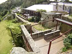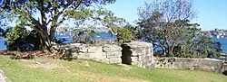 | Georges Head a heritage-listed former military fortification and part of the network of fortifications that were established to protect Sydney Harbour from attack. The buildings in the precinct illustrate the evolution of defence accommodation from the 1871 Barracks (later the Officer's Mess) to 1892 Married Quarters (now Gunshot Alley) to the 1954 separate individual rooms. |