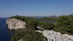 The land entry is located in 5 km (3.1 mi) from the village of Sali, the largest settlement of Dugi Otok. Cars must be left at the 🌍 parking lot in about 2 km (1.2 mi) of lake Mir.