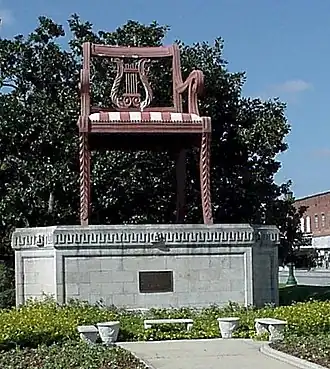 - ๐ The Big Chair, 6 West Main Street. a 30-foot replica of a Duncan Phyfe chair that sits in the heart of downtown beside the railroad tracks at the intersection of Main St. and NC-109 (Salem St. and Randolph St.). The chair was built in 1922 by the Thomasville Chair Company, now "Thomasville Furniture Industries," to honor the city's strong furniture industry.