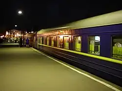 Many of the trains have dining cars. Prices are high for the quality you get. A main dish will cost €5–8. You may get freshly cooked food during lunch and dinner time, but on other occasions expect frozen food, which is warmed up in a microwave and becomes less than palatable. Drinks and alcohol are about 2–3 times more expensive than in the stores. On the other hand, you are not allowed to consume alcohol (save for beer) on board, and you are not allowed to bring your own alcohol to the dining cars, so if you want to drink, pay the price or do it quietly in your compartment, as most locals do. First-class tickets and even some of the 2nd-class tickets may include food (snacks for breakfast, warm food for lunch and dinner). A lady will come to your compartment and bring a couple of plastic bowls with warm food. It is usually freshly cooked and quite edible.