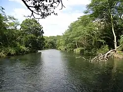 Tsavo West has an arid, hilly landscape, dotted with volcanic cones, dark lava flows and a number of rocky outcrops. It is bisected by the park's namesake, the Tsavo River.
