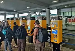 - Public transport tickets, which are valid on the buses, metro, and trams can be bought from kiosks called Metro • Tram • Bus in the arrivals halls (07:00–21:00, credit cards accepted) or faster at the yellow vending machine next to the bus stop outside both terminals (cards accepted).