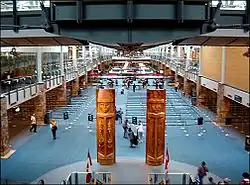 Even though its interior looks spartan with glasses and concrete ribs hanging above layers of metallic sheets, low ceilings at one pier and wooden pillars on the other, it also incorporates traditional First Nation artwork and miniatures of the British Columbia scenery, making it one of the most beautiful airports in the world. Added with the hospitality and wide availability of volunteers and amenities, it has earned the title Best North American Airport by Skytrax every year from 2010-2021, and has since 2022 sat in second place behind its regional rival Seattle-Tacoma International Airport. It is a hub for Canadian flag carrier Air Canada, as well as low-cost carrier WestJet.