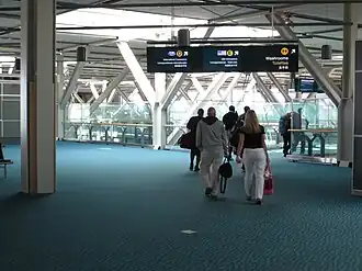 Connecting from a U.S. flight requires a detour to clear customs at Level 4, although you do not need to claim luggage.