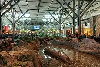 - On your way to the international gates, you will pass through a greenery area with a river and rocks at its bed and passages acting as bridges, and various depictions of salmon, herring, and the chief of the sea named Orca, symbolizing the close relationship of the First Nation with the sea.
