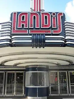 - 🌍 Landis Theatre–Mori Brothers Building, 830-834 E. Landis Avenue. This streamline modern building was built in 1937. It was added to the National Register of Historic Places on November 22, 2000, for its significance in architecture, engineering, and entertainment/recreation. It was designed by Philadelphia architect William Harold Lee, who designed several historic theaters.