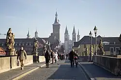 - 🌍 Old Main Bridge (Alte Mainbrücke). 24 hours. Not unlike Prague's St. Charles Bridge, it is a pedestrian-only bridge with six statues of kings and saints of historic importance for Catholicism in Franconia on each side. Under the bridge are water locks for ship traffic control on the Main, one of German's most important rivers. Locals would stand here admiring the splendid views of the fort and the river, all while sipping their glass of wine or bottle of beer. Free.