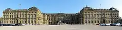 - 🌍 Würzburger Residence, Residenzplatz 2, ☏ +49 931 355170. Apr-Oct: daily 09:00-18:00; Nov-Mar: daily 10:00-16:30. Closed New Year's Day, Shrove Tuesday, Christmas Eve, Christmas Day, New Year's Eve. The Residenz is one of the finest palaces in Europe and famous for its grand staircase. It is regarded as one of the finest pieces of Baroque art in the world as such it has been inscribed on the UNESCO World Heritage List. The building was designed by Balthasar Neuman, and the largest fresco in the world, above the grand staircase, was painted by Tiepolo. The palace has 300 rooms, spread over 3 wings. There is also a chapel (Hofkirche) also decorated by Tiepolo which is free to enter and well worth a visit. Its gardens are also built with fortification in mind. Guided tours in English daily at 11:00 & 15:00 and is included in the ticket. Adults €9.00, reduced €8.00. Children under 18 free. Church and Garden: free for everyone..
