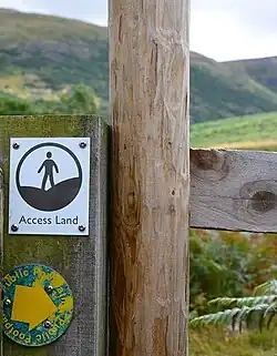 | Permissive path | Usually unmarked. Occasionally orange dashes on Explorer maps. | Varies, but often white arrow. | Varies. Check signage. | Permission given by landowner and may be withdrawn. | |||