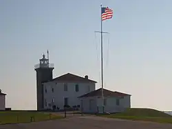 The lighthouse in Watch Hill was built not to guide ships at sea, but to warn residents of a naval attack. The original lighthouse was operational through the French and Indian war, and it is believed that the main tower was destroyed in a storm in 1781. The 35-foot-tall light tower was rebuilt as an order of congress and its operation began again in 1808. By the 1850s much of the wooden structure of the lighthouse and innkeeper's residence were rotting away. It was decided that repairs of the old lighthouse would be too expensive, so the current lighthouse was constructed in 1856. The new structure is built of granite and brick. The light keeper’s house now contains 3 bedrooms, a sitting room, a dining room, a kitchen, a maintenance room and a cellar. The lighthouse has survived many storms including the Great New England Hurricane of September 21, 1938 where waves were breaking over the top of the tower. The lighthouse was automated in 1986 and now serves as a museum. It can be found on the National Register of Historic Places. Additional Lighthouse information: The station is open to the public year round, and offers great views of the ocean and Fishers Sound. A museum located in the fog signal building contains the fourth-order Fresnel lens used in the tower, but it is only open during the summer months.