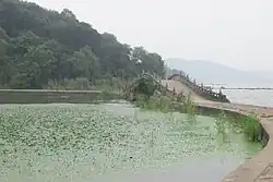 - Yuantouzhu (鼋头渚, Turtle Head Island) — It is a peninsula on the northwest coast of Taihu Lake. Because the boulder is surrounded by water on three sides, it is named "Yuantouzhu (Turtle Head)". Using the real mountains and waters, the garden is built to be three-pointed and seven-percent natural, making it the most ideal tourist attraction for viewing Taihu Lake.
